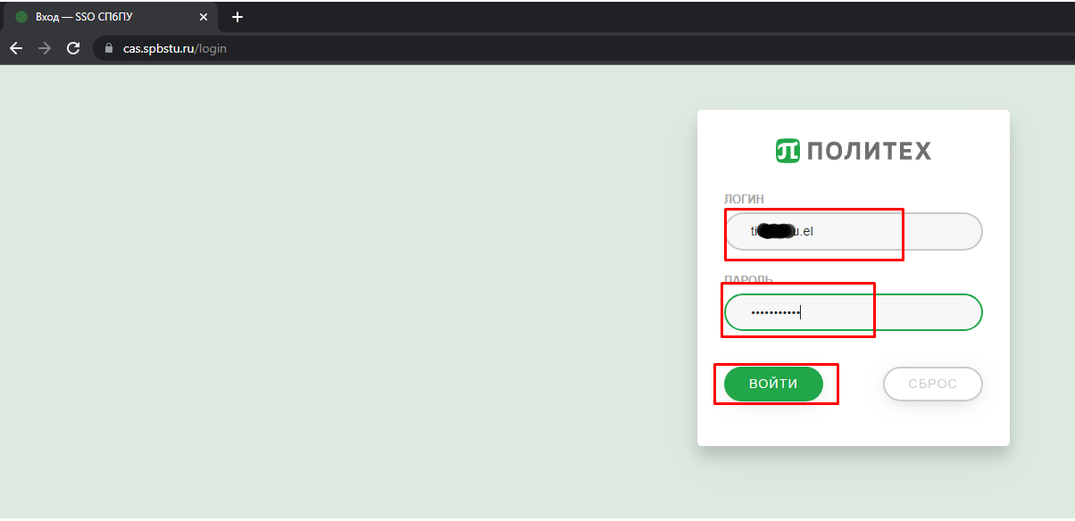 - В адресной строку браузера набираете: https://cas.spbstu.ru/